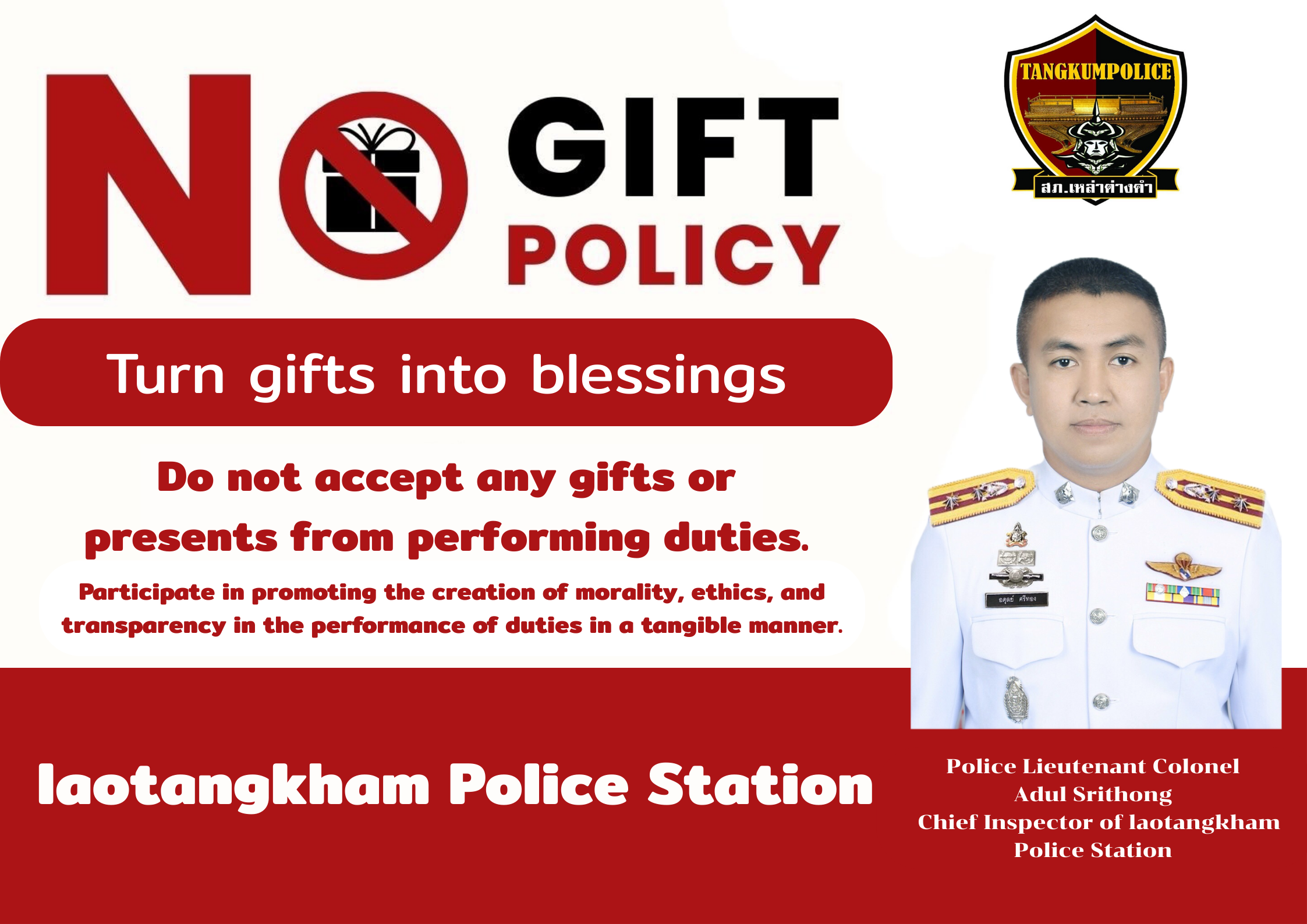 O 18 Announcement of laotangkham Police Stationอินโฟกราฟิกนโยบายไม่รับของขวัญและของกำนัลทุกชนิด (No Gift Policy) จากการปฏิบัติหน้าที่
